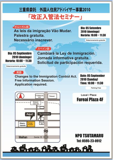 A NPO Tsutamaru irá realizar um seminário sobre as novas leis de imigração em Iga.