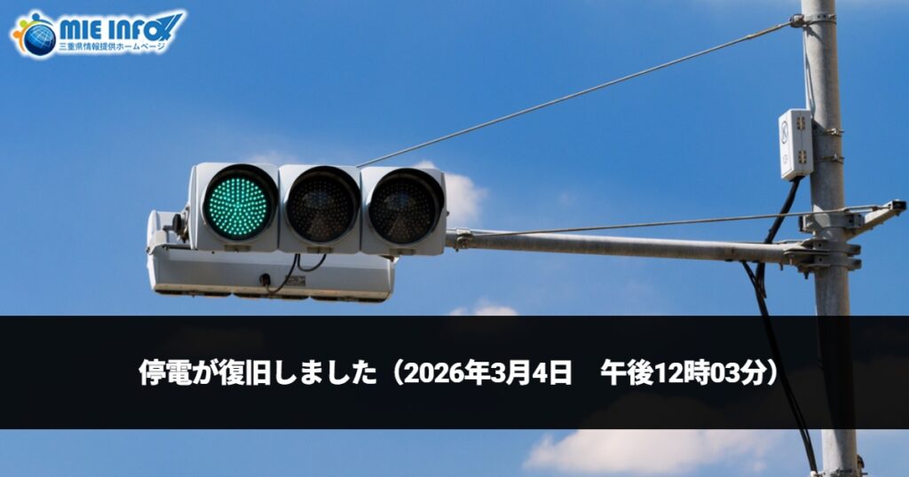 Naibalik na ang kuryente (Marso 4, 2026, 12:03 ng tanghali) 停電が復旧しました(2026年3月4日 午後12時03分) Share! Share on Facebook (Opens in new window) Facebook Email a link to a friend (Opens in new window) Email Share on X (Opens in new window) X Share on WhatsApp (Opens in new window) WhatsApp 2026/03/04 Wednesday Anunsyo, Kaligtasan Nagkaroon ng brownout sa Prefecture ng Mie noong Marso 4, 2026, ngunit naibalik na ang suplay ng kuryente.(Naputol ang kuryente, ngunit maaari na itong gamitin muli ngayon.) Ang disaster prevention app na “Mie Bousai App” ay makikita dito: Ang Official Disaster Prevention App ng Mie Prefecture, Mie Bousai Navi Share! Share on Facebook (Opens in new window) Facebook Email a link to a friend (Opens in new window) Email Share on X (Opens in new window) X Share on WhatsApp (Opens in new window) WhatsApp « May nagaganap na brownout (paunawa na inilabas noong Marso 4, 2026, alas-11 ng umaga) ↑↑ Next Information ↑↑ May nagaganap na brownout (paunawa na inilabas noong Marso 4, 2026, alas-11 ng umaga) 2026/03/04 Wednesday Anunsyo, Kaligtasan 停電が発生しています(2026年3月4日 午前11時) Share! Share on Facebook (Opens in new window) Facebook Email a link to a friend (Opens in new window) Email Share on X (Opens in new window) X Share on WhatsApp (Opens in new window) WhatsApp May nagaganap na brownout sa mga lugar sa paligid ng lungsod ng Ise. May mga lugar na hindi magamit ang kuryente. Mayroon ding mga traffic light at mga tawiran ng tren (railway crossings) na hindi gumagana. Kung magmamaneho, mangyaring mag-ingat nang husto. Ang disaster prevention app na “Mie Bousai App” ay makikita dito: Ang Official Disaster Prevention App ng Mie Prefecture, Mie Bousai Navi Share! Share on Facebook (Opens in new window) Facebook Email a link to a friend (Opens in new window) Email Share on X (Opens in new window) X Share on WhatsApp (Opens in new window) WhatsApp